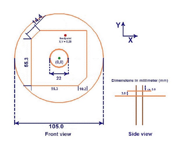 Was ich auch noch nicht verstanden habe, daß durch Abschneiden der Strahlerecken die Antenne zirkular wird.