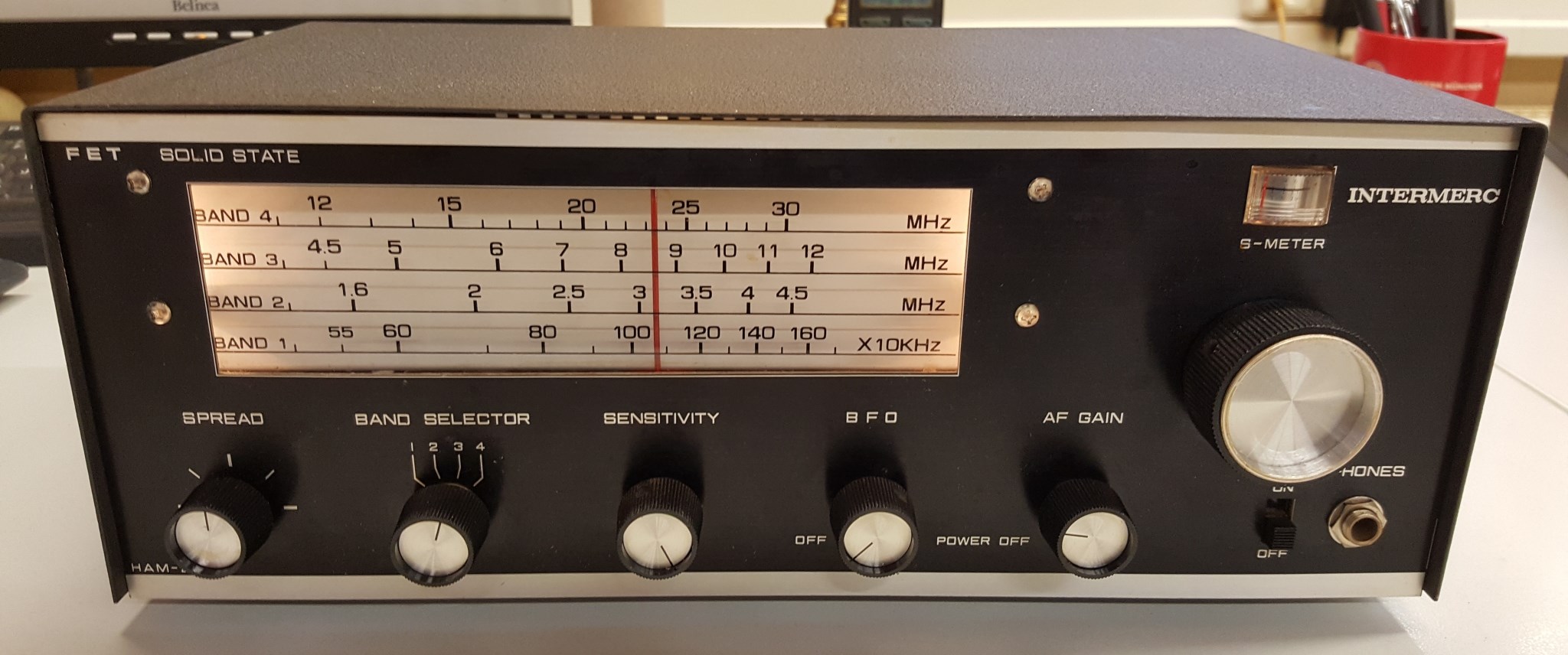 Mein (derzeitiges) Lieblingsradio ist der Intermerc FET Solid State Ham-2 , ein Japanisches Produkt aus den 1970'er Jahren. 8 Transistoren , Mittelwelle und Kurzwelle bis 30 Mhz. Der Empfänger war mir bereits als Jugendlicher aus Prospekten bekannt jedoch konnte Ich mir das damals leider nicht leisten. Vor einigen Jahren wurde dieses Exemplar als "Defekt" versteigert obwohl das Gerät tadellos funktioniert. Besonders viel ist über den Hersteller nicht bekannt. Die wenigen verfügbaren Informationen findet man unter dem Suchbegriff Intermerc Ham2.