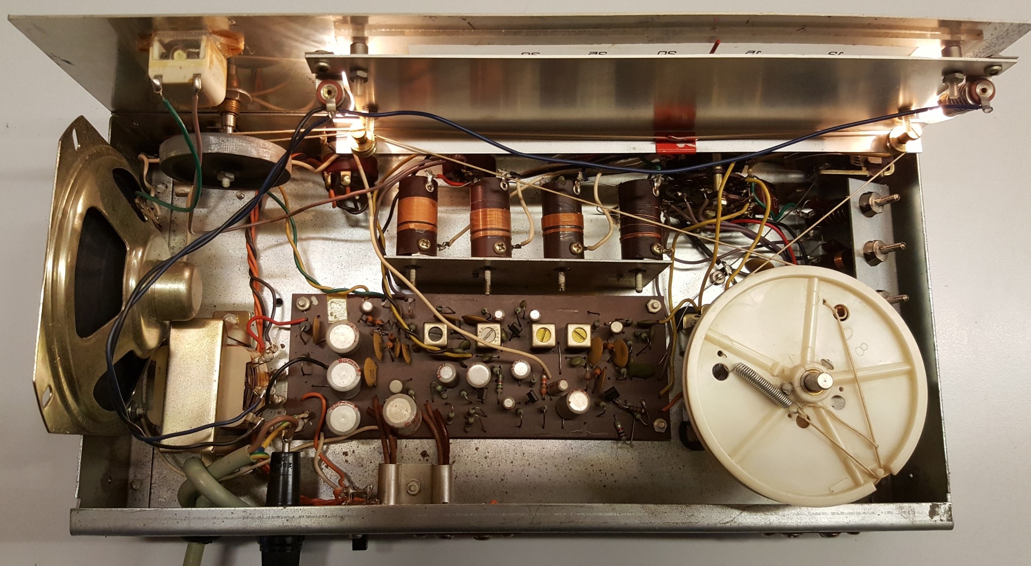 das Gerät hat gewisse Verwandtschaft mit diesem hier: https://www.welt-der-alten-radios.de/aus...etail-1580.html es könnte durchaus die transistorisierte Weiterentwicklung sein. Für Rundfunkempfang sehr komfortabel, aber für SSB und CW halt nur bedingt geeignet.