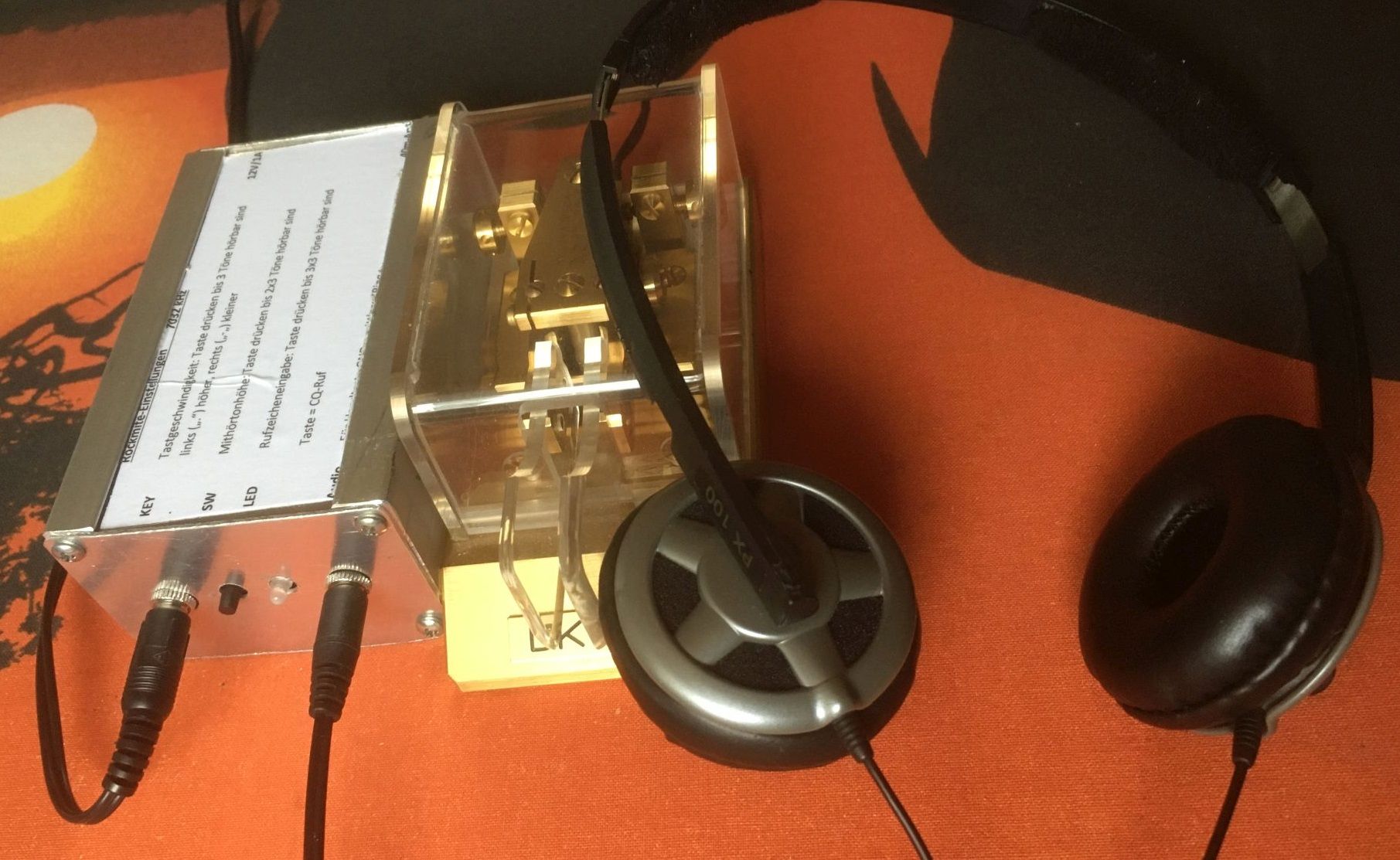 Eine etwaige Handtaste ist zwischen beiden Paddleanschlüssen der Squeeze-Taste und Masse anzuschliessen. Ein cq-Ruf "cq cq cq de call pse k" lässt sich durch Antippen der Taste auslösen. Er hört sich holprig an, denn die Elementpausen sind zu gross. Für eine Konfigurierung muss der Taster an der Frontplatte länger als 3 Sekunden gedrückt werden. Nach den Quittungstönen lassen sich Tastgeschwindigkeit und Mithörtonhöhe einstellen. Die Eingabe des eigenen Rufzeichens muss mühsam für alle Teilelemente der Morsezeichen erfolgen.