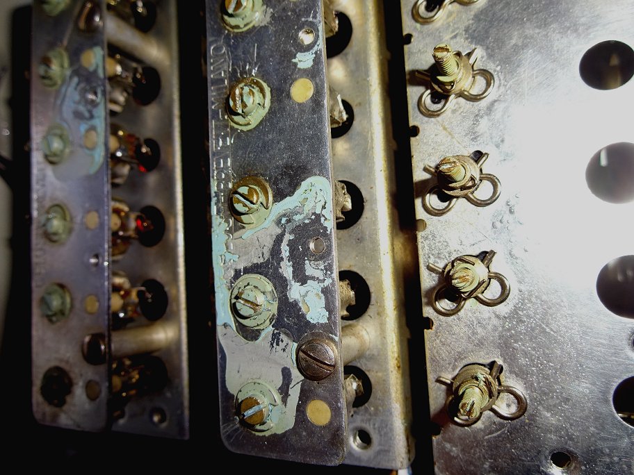 Im folgenden Foto sind einige Detail der Chassisunterseite im Anlieferungszustand sowie ein defekter Röhrensockel zu sehen.