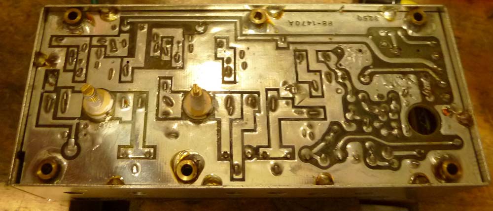 Der Aufbau entspricht so gar nicht den fernöstlichen Traditionen. Das Ganze ist auf einem stabilen Chassis aufgebaut, und die einzelnen Leiterplatten sind als Module aufgesteckt, es gibt nur sehr wenig Verdrahtung, und die ist bei Reparaturarbeiten nicht im Weg. Zum Messen an den Modulen gibt es noch einen Verlängerungs-Adapter, so ist das Modul zum Messen frei zugänglich. Weiter ist im Manual auch ein kompletter Schaltplan und eine Schaltungsbeschreibung und Abgleichanleitung vorhanden.