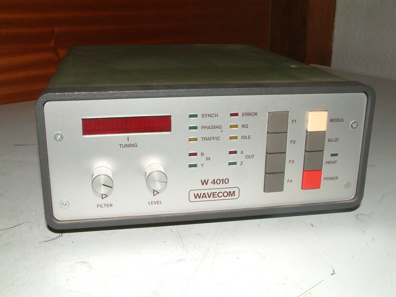 Das Gerät wird verbunden mit einem Monitor (75 Ohm), und einem Drucker (centronix), und bildet so eine eigenständige Dekodiereinheit für RTTY, CW und eine stattliche Anzahl von Packet Radio Kodierungen. Es werkelt mit einem 8 Bit CPU, taktet 4MHz. Der Monitor sollte 80 Zeichen können, Fernseher sind nicht optimal geeignet. Kommunikation mit dem PC geht über RS232