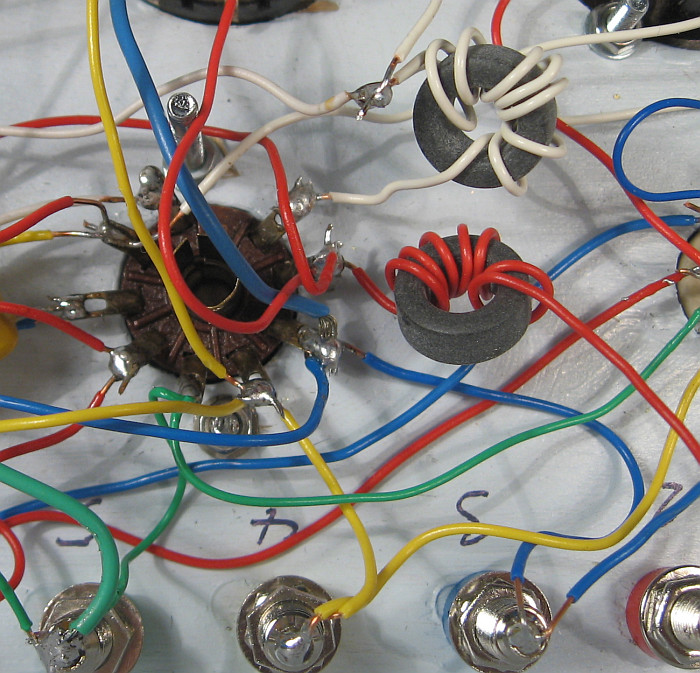 Ein geerdetes Metallgehäuse, ein Kabelbaum und Ferritperlen an jedem Anschluss der Fassungen wäre die optimale Lösung. Jetzt werde ich aber so lange die Ringkerne, von denen ich ein Säckchen habe, einsetzen, bis bei den gängigsten Röhren kein Schwingen mehr auftritt. Der erste, rot bewickelte Ringkern hat bei der steilen PCC88 und bei der ebenso steilen EF184 übrigens vollkommen ausgereicht.
