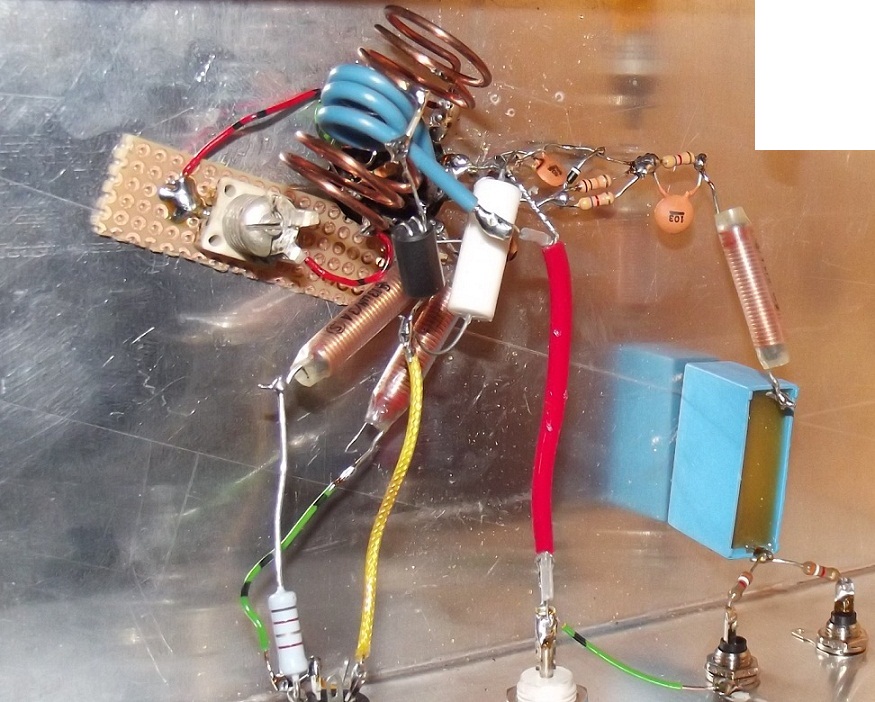 Der Versuchsaufbau von 2 Komponenten: Der eine auf einem Steckbrett und der andere in einem Chassis. Die Verbindung beider Komponenten fliegend. Die Anodenspannung wird über einen Längstransistor stabilisiert (auf 24V). Ein separater Siebblock ist nicht vorgesehen.