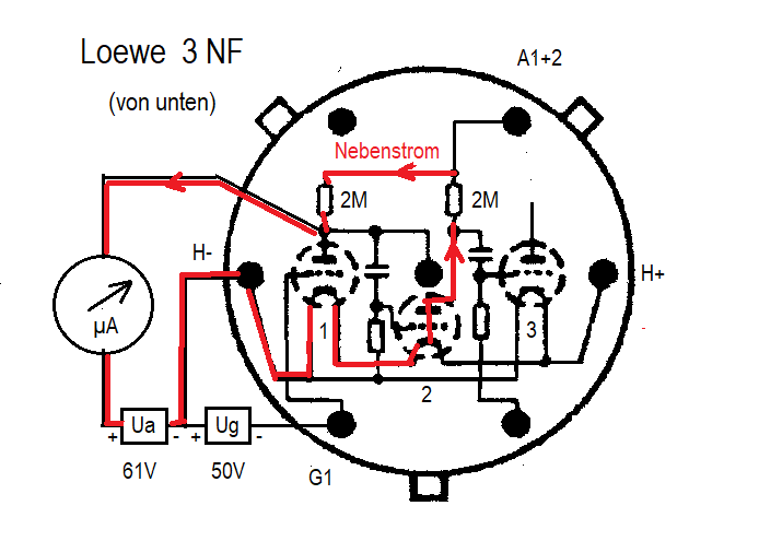Weil die Anode der 1.Triode gesondert herausgeführt ist, lässt sich diese System ebenfalls messen.
