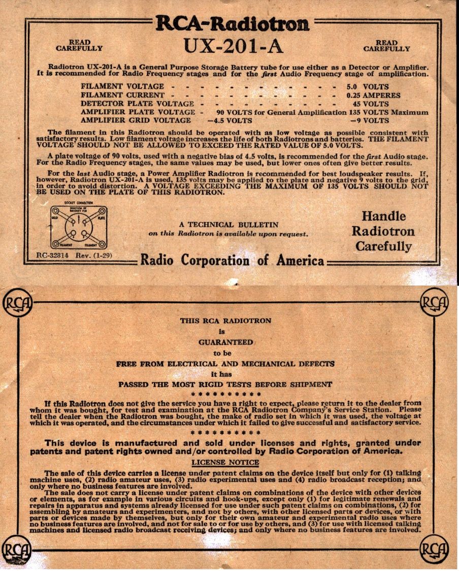 5: RCA: UX201A f=5v Vg=-4.5 v Ia= 2.6mA Ua=90v Vac.test = OK.