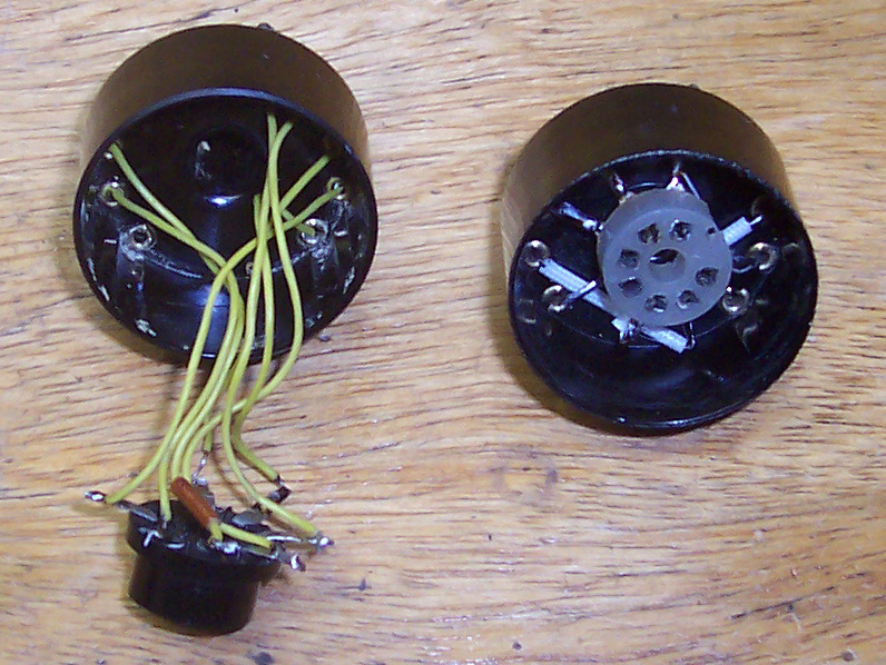 Und zuletzt der Adapter DL11/DL96 - gebaut aus einer DDR Bakelitfassung und dem Sockel einer DDR-"Stahlröhre" mit Glaskolben.