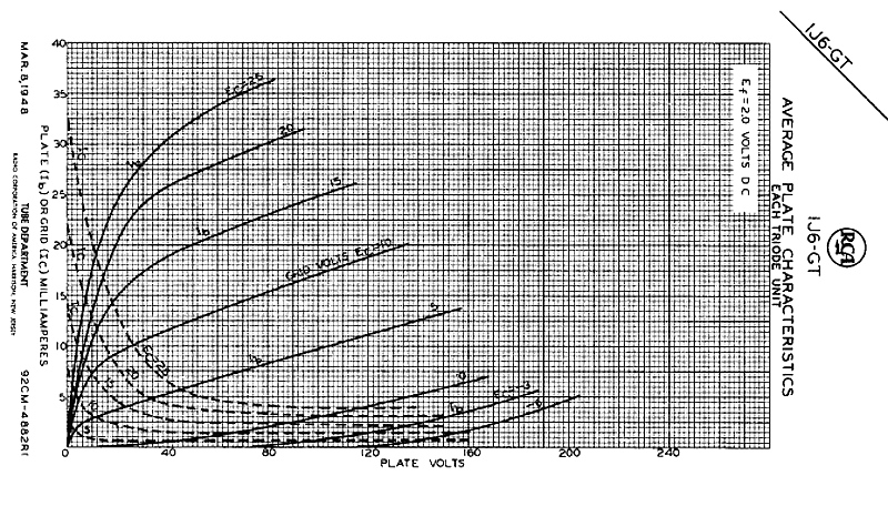 Damit liegt die R212 in ihren Eigenschaften deutlich näher an der 1J6G als an der KDD1. Aus dem Datenblatt für die 1J6G habe ich folgende Werte entnommen: Bei Ua=135V: Ug=-6V/Ia=0,2mA Ug=-3V/Ia=3,4mA Ug=0V/Ia=10mA. Entsprechend werden die nötigen Steuerleistungen mit 95, 130 und 170 mW angegeben. Die entsprechenden Ausgangsleistungen betragen 1,6 1,9 und 2,1 Watt. Die Leistungsverstärkungsfaktoren betragen 16,8 14,6 und 12,3. Für eine leistungslose Steuerung dürfte der Output unter 1W fallen. Dafür ist die Röhre einfach nicht gebaut.