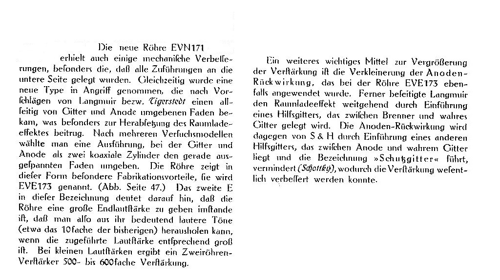 Die EVE173 war nach der EVN171 die erste Telefunkenröhre mit zylindrischer Anode, die aus Kupfer- oder Nickelblech (ganz selten dünnes, blankes Eisenblech) gefertigt wurde.