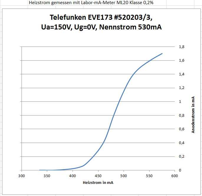 Der Anodenstrom ging bereits in die Sättigung, und ich hätte mehr als die aufgedruckten 550 mA heizen müssen. Das war mir aber zu risikoreich.