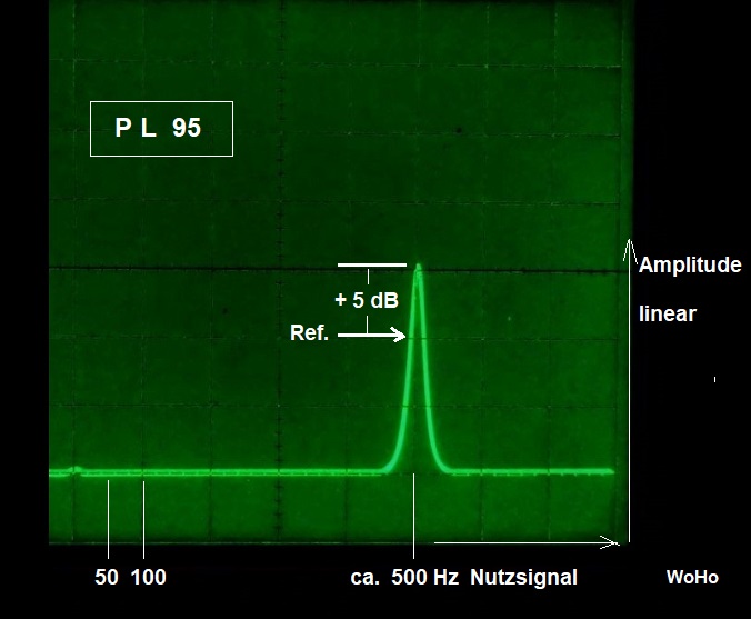 Bisher wurde hauptsächlich mit dem Gehör (und Oszilloskop) die Unterdrückung des ungewünschten Restbrummens beurteilt. Mit dem mir zu Verfügung stehenden Spectrum-Analyzer Tek 5L4N habe ich einen anderen Blick auf die Fragestellung „Womit ist die RES164 zu ersetzen?“ bekommen. Hiermit lässt sich die frequenzmäßige Aufteilung der einzelnen Komponenten sehr schön darstellen.