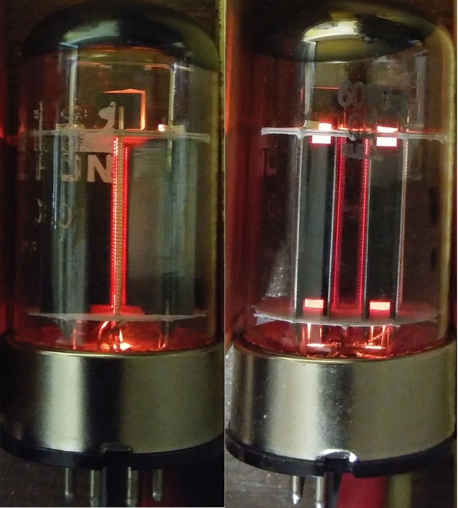 in meinem Heathkit IP17 Netzteil, das ich für alle Messungen verwende, werkeln übrigens auch 2 Stück 6L6GC. Die JJ-Röhren wird man kaum als NOS los, sie werden bekanntlich auch noch gefertigt. Bei den Audiophilisten geht es nur um den Status "must have", am besten Elrog oder die tschechische Bude . Rote Backen kenne ich aus der 5xPL509 Zeit bei 1kW HF-Output. Das ging fast immer sehr lange gut. Alleine der Ruhestrom brachte bei der hohen Anodenspannung (900 Volt, habs vergessen) schon eine gewisse, dunkle Rotglut mit.