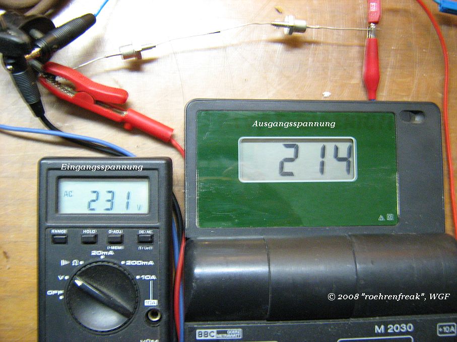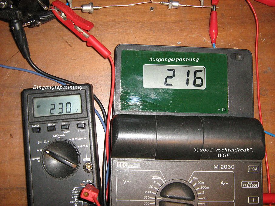 wie ich schon weiter oben angab handelt es sich um zwei ZX10, also 10Volt/10Watt-Z-Dioden. Für mich war es auch etwas überraschend, daß sich die Spannung um rund 15Volt reduziert hat, was schliesslich und endlich jedoch kein Nachteil sein dürfte weil auch Netz-Schwankungen bis 240Volt damit gut "weggesteckt" werden.