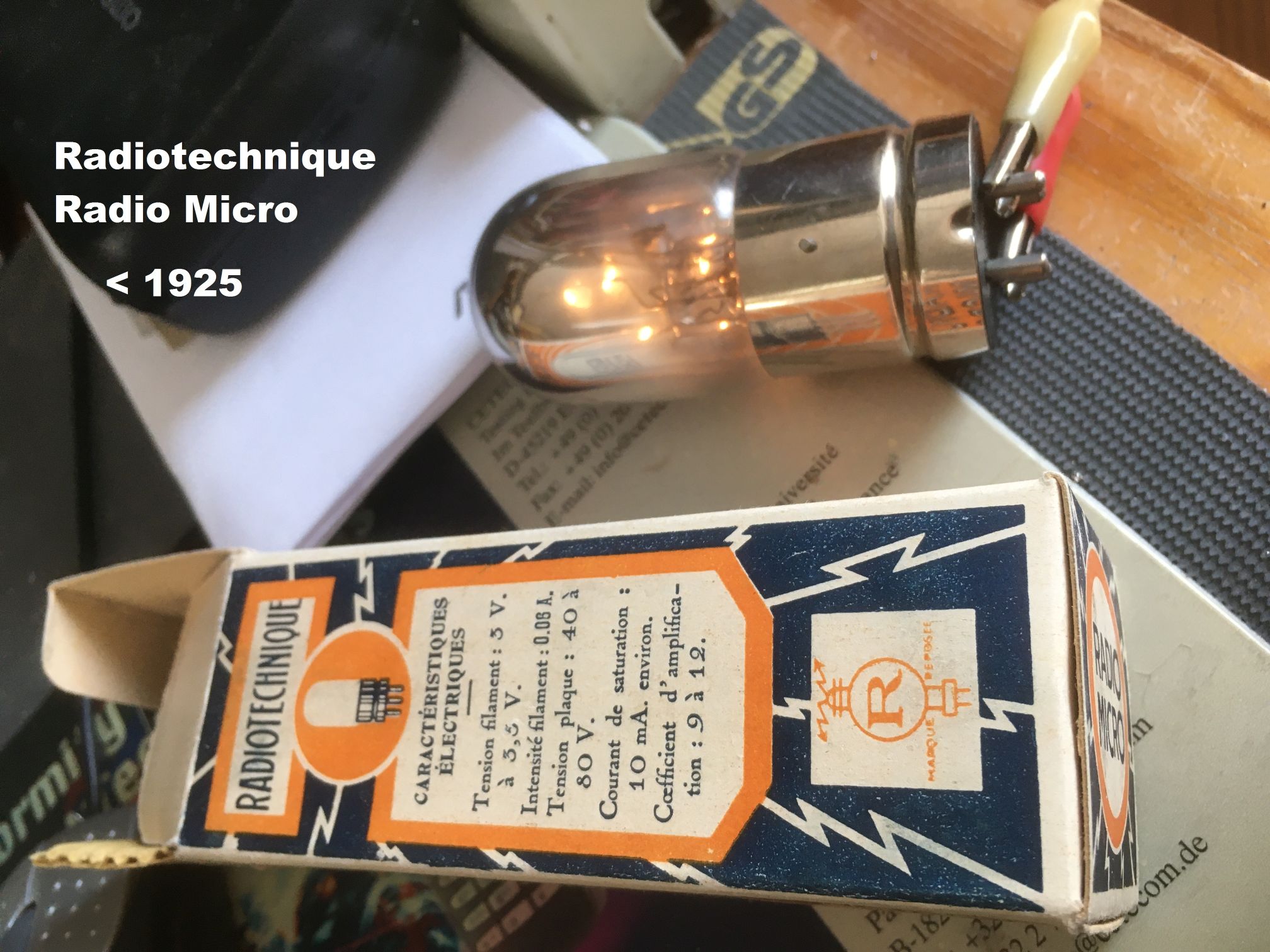 Der Fall der Radio Micro ist anders zu bewerten. Das ist wohl ein Fehler in der Getterung. Heute habe ich eine der nicht funktionierenden Röhren zerschlagen und mass nur 500 Ohm Widerstand entlang des Quetschfusses auf dem Glas. In der Glaskuppel waren es über mehrere Zentimeter nur 1 Ohm. Wenn ich Zeit und Lust verspüre, mache ich für die Radio Micro einen eigenen Beitrag auf. Diese Röhre war in Belgien und Frankreich zwischen 1924 und 1928 verbreitet. In der mir vorliegenden UV-Fassungsversion sicherlich als Ersatzteil für US-Geräte. Die Radio Micro verwendete übrigens schon Dumet-Draht.
