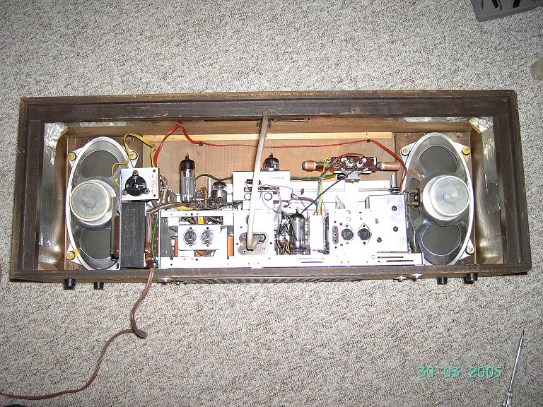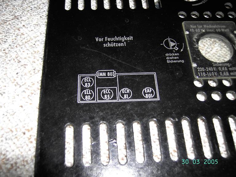 Hallo liebe Forumsgemeinde, ich besitze einen Loewe Opta, Planet Stereo 62061. Dieser ist mit 6 Röhren bestückt. Bei einer gugelei fand ich in der Schweizer Bucht eben diesen Radio. Das Angebot ist schon ausgelaufen, aber noch online. "LOEWE OPTA Planet Stereo 62061 Röhren Radio von 1965 RAR", wäre die Sucheingabe in der Suchmaschine mit den 2 ohs, dann gleich der Erste in der Liste.) Als ich mir die sehr guten Photos ansah, erkannte ich eine zusätzliche Röhre. Aber auf der Geräte Rückwand ist die gleiche Röhren-Grafik wie bei mir. Also die zusätzliche Röhre nicht aufgeführt. Hier mal ein Photo von meinem. Zwischen der ELL 80 und der ECC 83 (die erste und zweite Röhre von Links) sitzt, bei dem Schweizer Angebot, eine Röhre die ich sonst in keiner Beschreibung und auch auf keiner Abbildung im Netz finden konnte.