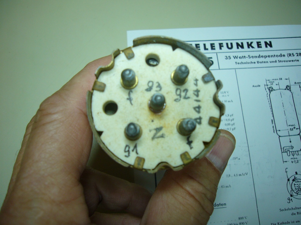 Da hast Du echt großes Glück gehabt. So eine RL12P35 habe ich auch, ebenfalls als Ex-Wehrmachtsröhre. Das einzige, aber nicht unlösbare Problem, ist die fehlende Fassung. Diese werden öfter auch in der "Bucht" für mehr als 20 Euro angeboten. Einfach "Nepp". So kann man die Röhre alternativ über eine Schelle mit Standfuß anbringen und die Anschlüsse am Sockel unter entsprechender Vorsicht direkt anlöten. Toll finde ich an ihr die beiden Kappenanschlüsse oder auch "Hörner", mit etwas Phantasie. Ich wünsche Dir mit dem schönen "Stück" viel Freude und den gewünschten Erfolg.