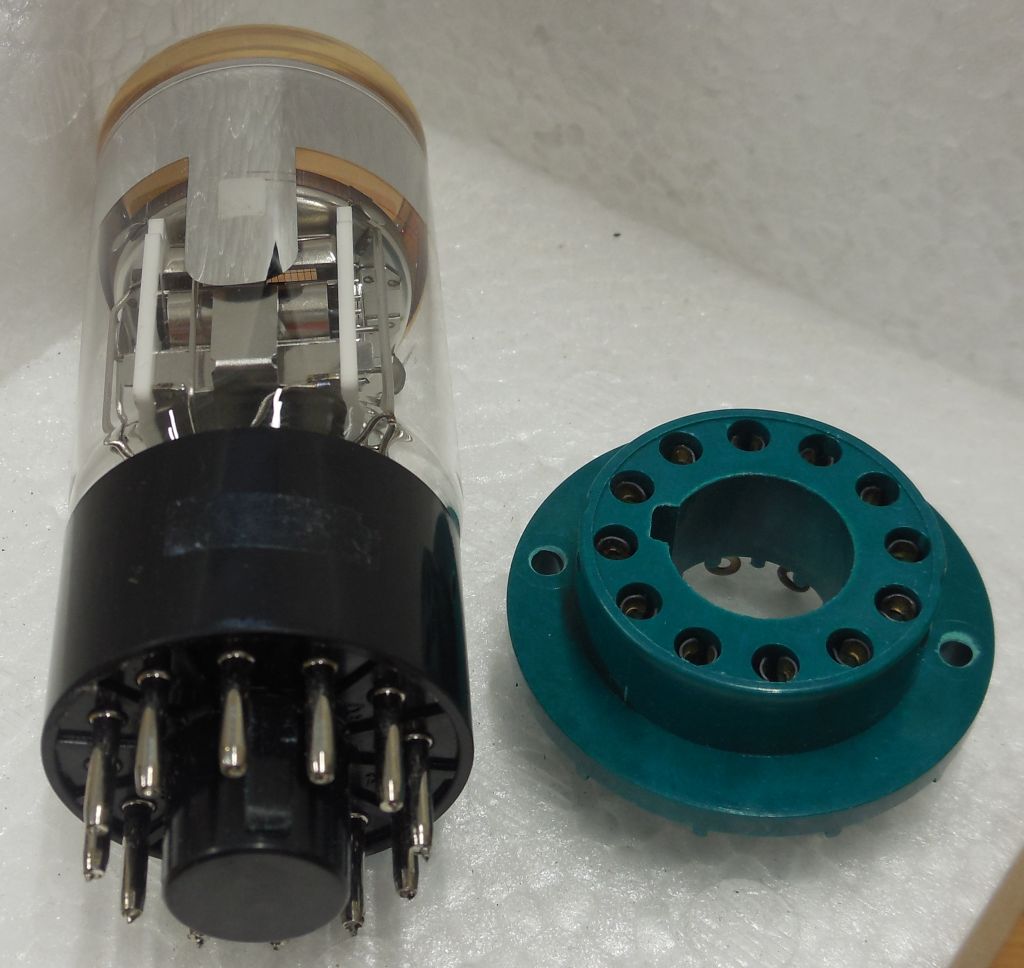 die Anzahl der Anschlüsse ist beim PMT abhängig von der Anzahl der Dynoden. Bei 19 Dynoden, sowie Anode und Photokathode, benötigt man also mindestens 21 Anschlüsse. Habe mal ein Photo von einem 2 Zoll PMT von 1980 gemacht. Hier wurden noch 20 (dicke) Pins verwendet. Später ist man dann bei der teilweise noch höheren Anzahl an Pins, aus Platzgründen, auf Pins übergegangen, wie sie auch z.B. bei der EL84 verwendet werden.