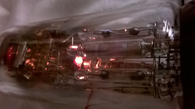 mit dem Ohmmeter wirst du leider nicht viel erreichen und mit einer Sichtprüfung auch nicht wenn die silberne Beschichtung oder eine Abschirmung dieses verhindern. Mit dem Ohmmeter kannst du nur so ungefähr prüfen auf eventuellen Kurzschluss aber das bringt nichts weil es die ganze Sache verfälschen kann. Nicht umsonst gibt es ja die Röhrenprüfgeräte. Bei den Mehrfachröhren mit in reihe geschalteten Heizfäden ist daher ein Ohmmeter für mich nicht mehr zu gebrauchen. Hatte vor einiger Zeit zwei 3nf erstanden und eine davon war defekt. Die Heizfäden waren bei einer alle 3 intakt und bei der anderen nur noch der in der Mitte. Diese Röhre habe ich noch und werde diese auch nicht verkaufen. Das interessante daran war das der gute Mann mit einem relativ hochwertigen Ohmmeter diese beiden Röhren vor meinen Augen gemessen hat um mir zu veranschaulichen das beide intakt sind. Beide Röhren zeigten ungefähr die gleichen Werte auf dem Ohmmeter an. Verblüffend nicht war ? Da liegen nun bestimmt viele Röhren im Schrank oder der Vitrine von Sammlern rum und die meisten denken jetzt, nach Sichtprüfung und Ohmmeter Test sind die ja in Ordnung. Ich war bis vor kurzem auch ahnungslos was den Röhrenschnelltest betrifft aber eines ist mir klar geworden ich vertraue mehr einem Verkäufer der die Röhre mit leuchtenden Heizfäden auf seinen Fotos abbildet als einem der sagt: "Heizung mit Ohmmeter geprüft, haben alle Durchgang, Röhre ist in Ordnung." Mein Vorteil ist das ich nur Interesse für die 3nf habe, würde ich auch noch andere Röhren sammeln dann müsste ich mir natürlich um die benötigten Sockeladapter und die unterschiedliche Spannung für die Heizung Gedanken machen, aber ich denke das wäre mit der nötigen tragbaren Stromquelle die sich einstellen lässt inkl. der benötigten Anzeige für die Heizspannung auch kein Problem. Somit kann man sehen ob die Heizung geht, Ok die Emission lässt sich nicht prüfen aber das geht ja auch ein bischen zu weit. Für mich wäre es nur interessant wenn man auf diversen Flohmärkten unterwegs ist wo diese dinge gehandelt werden. Und bei Abholung wenn man auf Ebay gekauft hat. Sollte jemand mit einem Test nicht einverstanden sein dann sollten die Alarmglocken klingeln. Am besten man nimmt sich intakte Röhren mit die man dann auch vorführen kann damit der Verkäufer sieht das er es nicht mit einem *(F)*en zutun hat. Kann ja gut passieren das der dann sagt: "die haben Sie aber jetzt eben gerade kaputt gemacht mit ihrem Test." Daher auch der sehr schonende Test bei der 3nf mit knapp 3 Volt Batterie Spannung. Keiner muss mehr Röhren kaufen mit defekten Heizfäden, das ist mir jetzt klar geworden, natürlich braucht es für einige Exemplare eine kleine Schaltung aber egal, das ist mit wenig Aufwand und kleinem Geldbeutel abgetan und der Ärger hält sich in Grenzen wenn nur die Emission nicht mehr gut ist. Habe den Röhrenschnelltest mal veranschaulicht durch ein paar Bilder von meiner kaputten 3nf wo nur noch der dritte Heizfaden in der Mitte geht. Desweiteren ist bei der Röhre auch gut zu erkennen das eine Sichtprüfung nicht mehr möglich ist. Auf ein Bild mit einem Test durch Ohmmeter habe ich bewusst verzichtet, da du ja weißt wenn der Faden in der Mitte Glüht dann zeigt der Ohmmeter auch etwas an, doch das was er anzeigt ist nicht das was man möchte. Gibt übrigens auch eine kleine Schaltung auf SMD Basis mit der man die Röhre wieder zum laufen bekommt, wenn der mittlere Heizfaden noch geht, das ist die vorraussetzung. Eine Heikle Sache finde ich und genau so grenzwertig wie Nachbauten denn wenn man einen Boden unten drauf setzt den schön mit Superkleber fest klebt und einen Laien findet der sich von dem Test das der mittlere Heizfaden funktioniert überzeugen lässt das alles geht. Funktioniert bestimmt sehr gut wenn der obere Bereich der Röhre eine Sichtprüfung fast unmöglich macht. Der Verkäufer sagt dann noch: "Die anderen beiden Heizfäden können Sie nicht gut erkennen wegen der silbernen Beschichtung, aber der in der mitte geht nur wenn die anderen auch noch gehen." Desweiteren noch einen Aufbau mit Mittelwellensender und angeschlossenem MP3 Player und der Griff zum Portmonay ist fast vollzogen. Ich bin schon so oft über das Ohr gehauen worden, entweder war es meine eigene Dummheit oder die Schlauheit der anderen mich so hinter das Licht zu führen das selbst ein Profi mit den Ohren geschlackert hätte.