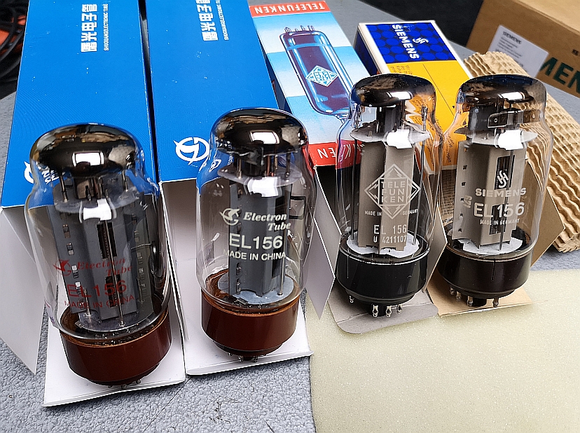 Diese hier im Bild, die Shu-Guang wie die Originalen -EL156- nennt, müsste eigentlich auch eine Zusatzbezeichnung haben, weil sie ja keinen 10-poligen Stahlsockel mehr hat, sondern den Oktal wie die EL34, KT88 etc. Sie funktioniert ganz gut, aber man muss sie schon paaren. Das Vakuum ist aber leider deutlich schlechter! Arbeitspunkte sollten einstellbar sein. Ist es so schwierig ein gutes Vakuum hinzubekommen wie man es zur "Hoch" Zeit der Röhren hinbekommen hat???