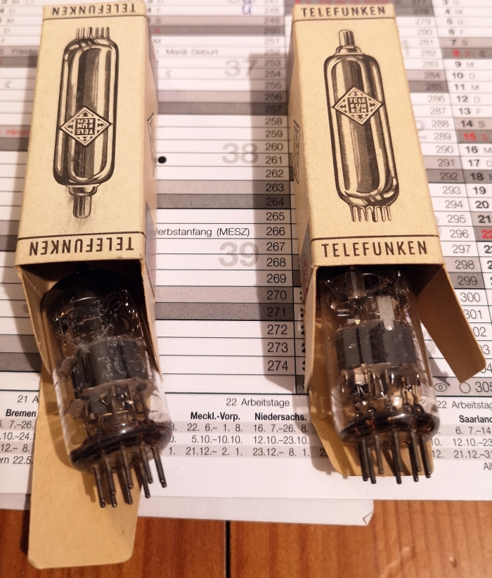 Meine Röhren haben natürlich auch keine Raute im Glasboden und auch keine U oder Bxxxxxx Nummer aufgedruckt, sondern eine fünfstellige Zahl. Ok, kann schon sein das TFK die nie selbst in Ulm oder Berlin hergestellt hat. Komischerweise ist der Aufdruck grottenschwach, teils hat er sich ganz aufgelöst /abgefallen/ pulverisiert. Was meint Ihr dazu?