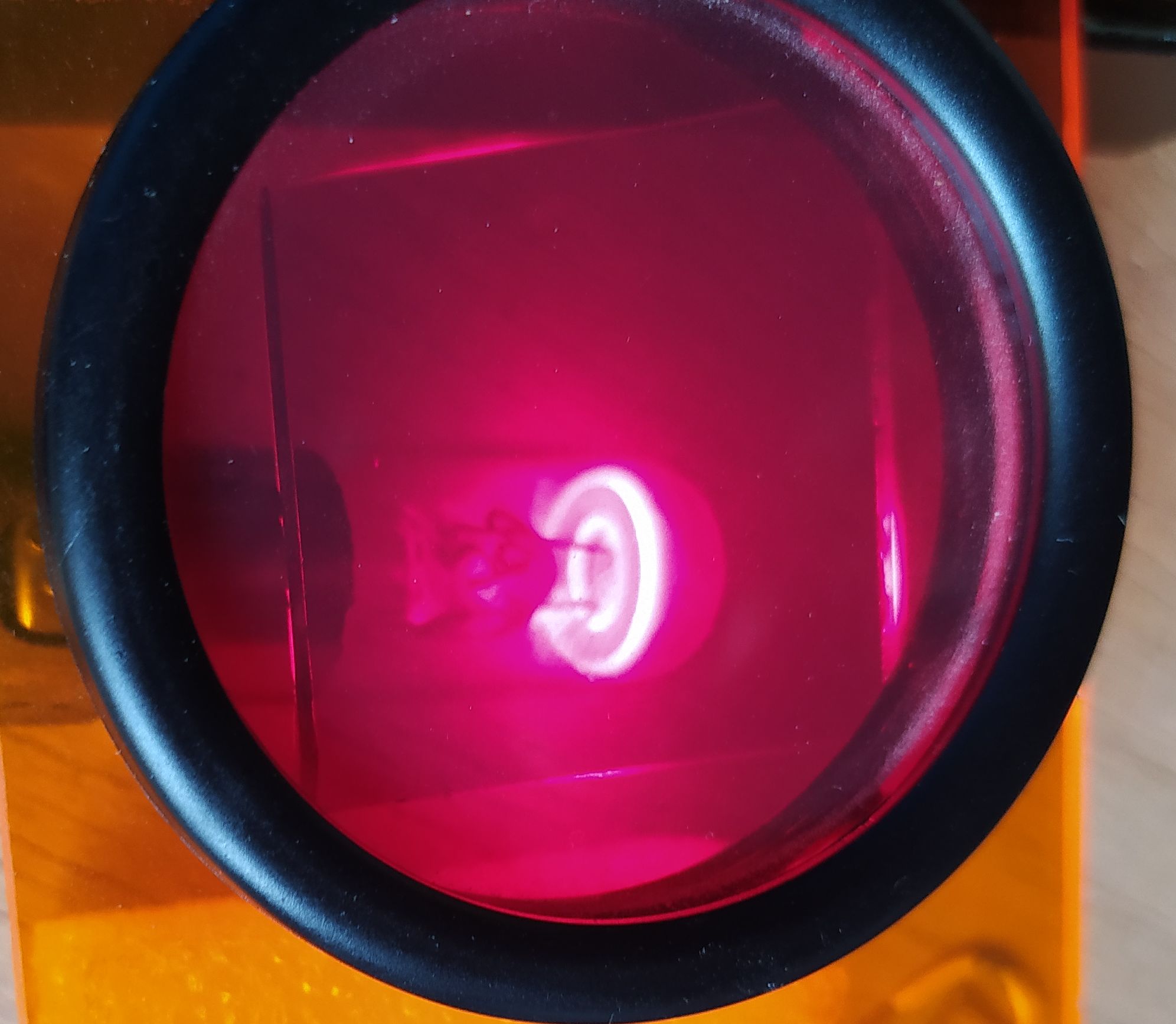 beim sortieren meiner Elektronikteile ist mir eine Glimmlampe von Osram ins Auge gefallen. Sie ist 48mm lang und beinhaltet Quecksilber. Man erkennt es an den kleinen, unregelmässig verteilten, silbernen Perlen auf der Innenseite des Glases. Da mich für spektrale Messungen die 254er Hg-Linie interessiert, habe ich die Lampe in Betrieb genommen. Das Problem war, an welchem Kontakt ist welche Elektrode angeschlossen? Ich habe mir gedacht, dass bei einer Verpolung nichts kaputt geht, was sich dann auch bestätigte. Bei einer Versorgungsspannung von 170V über einen 30kOhm Widerstand fing die Lampe an zu leuchten. Die Brennspannung war jetzt 153V (bei 0,9mA). Versuchsweise verpolte ich mal die Versorgungsspannung. Die Lampe leuchtete auch jetzt bei gleicher Brennspannung und bei gleichem Strom. Was mich aber verwunderte, egal wie ich die Lampe anschloss, es leuchtete immer die Oberseite des hinteren Rings. Ehrlich gesagt, das kann ich mir nicht erklären. Auf den Elektroden kann ich auch keine aufdedampften Materialien erkennen.