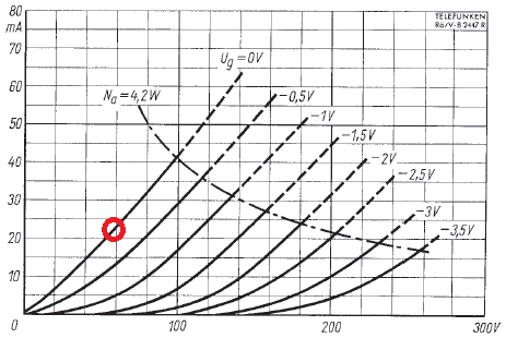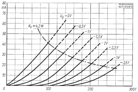 - grosse Steilheit 28mA/V (EC8020: 60mA/V!) - hohe Ausgangsleistung im Wattbereich (max. Anodenverlustleistung 4,2W) - praktisch keine Mikrofonie