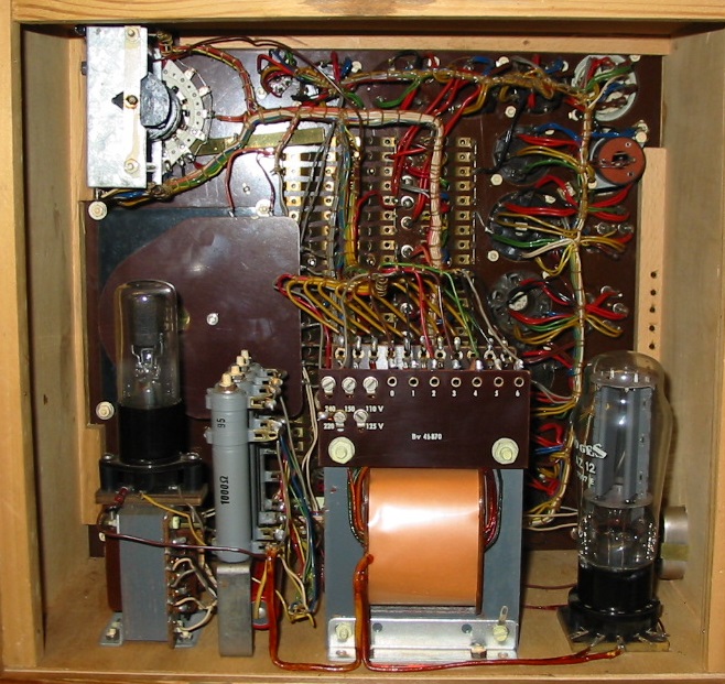 In seltenen Fällen kommt es vor, dass Röhren im Funke Selbsterregung zeigen. Dann sind die angezeigten Werte meistens zu hoch und ändern sich, wenn man die Röhre mit der Hand umfasst. Bei der EC8010 trat das aber nicht auf. Abblock-Kondensatoren an den Fassungen sind nicht zu erkennen, allerdings dürften die Kabelbäume in ihrer Führung hilfreich sein:
