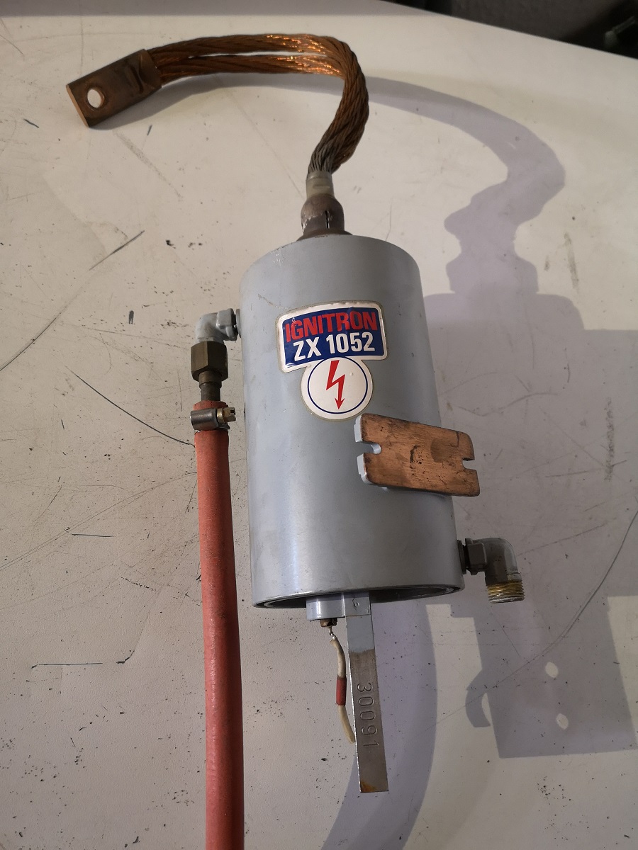 Die ZX1052 ist eine wassergekühlte Quecksilber-Schaltröhre die keine Probleme damit hat Ströme um 140A zu schalten. Da sie eine große Menge Quecksilber enthält sollte man sie nur an Leute abgeben die damit umzugehen wissen. Diese hier und eine weitere reisen in ein technisches Museum wo sie hoffentlich noch vielen Leuten gefallen werden.