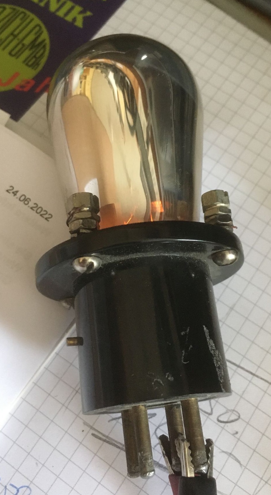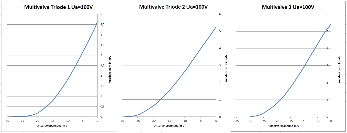in einer Auftragsarbeit habe ich heute morgen eine Emerson Multivalve EMV3A durchgemessen. Man kann diese Röhre aus dem Jahr 1926 in gewisser Weise als Pendant zur Loewe 3NF sehen, obwohl sie nur kleine Lautsprecher aussteuern konnte und in der bis dahin traditionellen Transformatorkopplung angewendet wurde. Die Heizungen der drei Einzeltrioden sind in Serie geschaltet. Sie wurde mit dem geringen Heizungsstrombedarf von 250 mA bei 5 V beworben, entsprechende Trockenbatterien waren erhältlich.