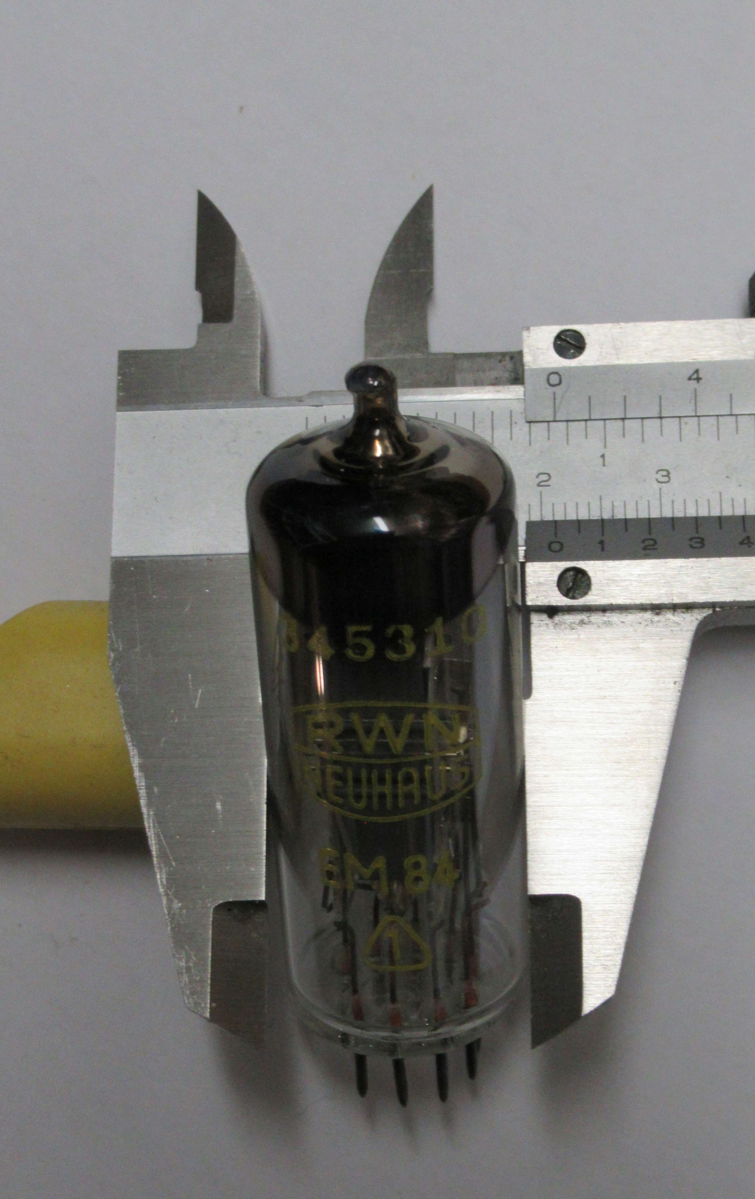 Es kann natürlich auch sein, dass die RSD-Röhre (und die China-Kopie) eine bewusste Verbesserung der Konstruktion ist (das längere Schattenband gibt mehr Ablesegenauigkeit), aber dass sie auf eine neue Typenbezeichnung verzichteten. In der Praxis kann man diese ja problemlos an Stelle einer originalen EM84 verwenden, es sieht einfach etwas anders aus, und allenfalls muss man die Steuerspannung etwas reduzieren, wenn schon die originalen EM84 voll ausgesteuert wurden.