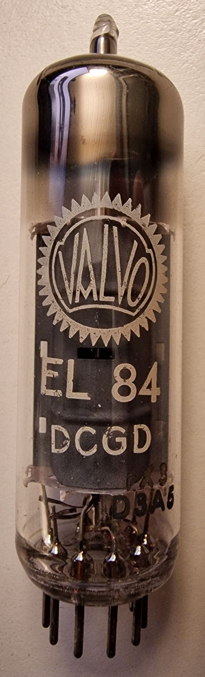 Nachtrag: Frank aus dem RBF-Forum hat mir noch ein Exemplar EL84 geschickt. Hier auch rX3 D9C und mit längeren Cu-Stegen. Man kann vermuten die g1-Kühlfahnen wurden vergessen, weil die Cu-Stangen deutlich länger herausstehen.