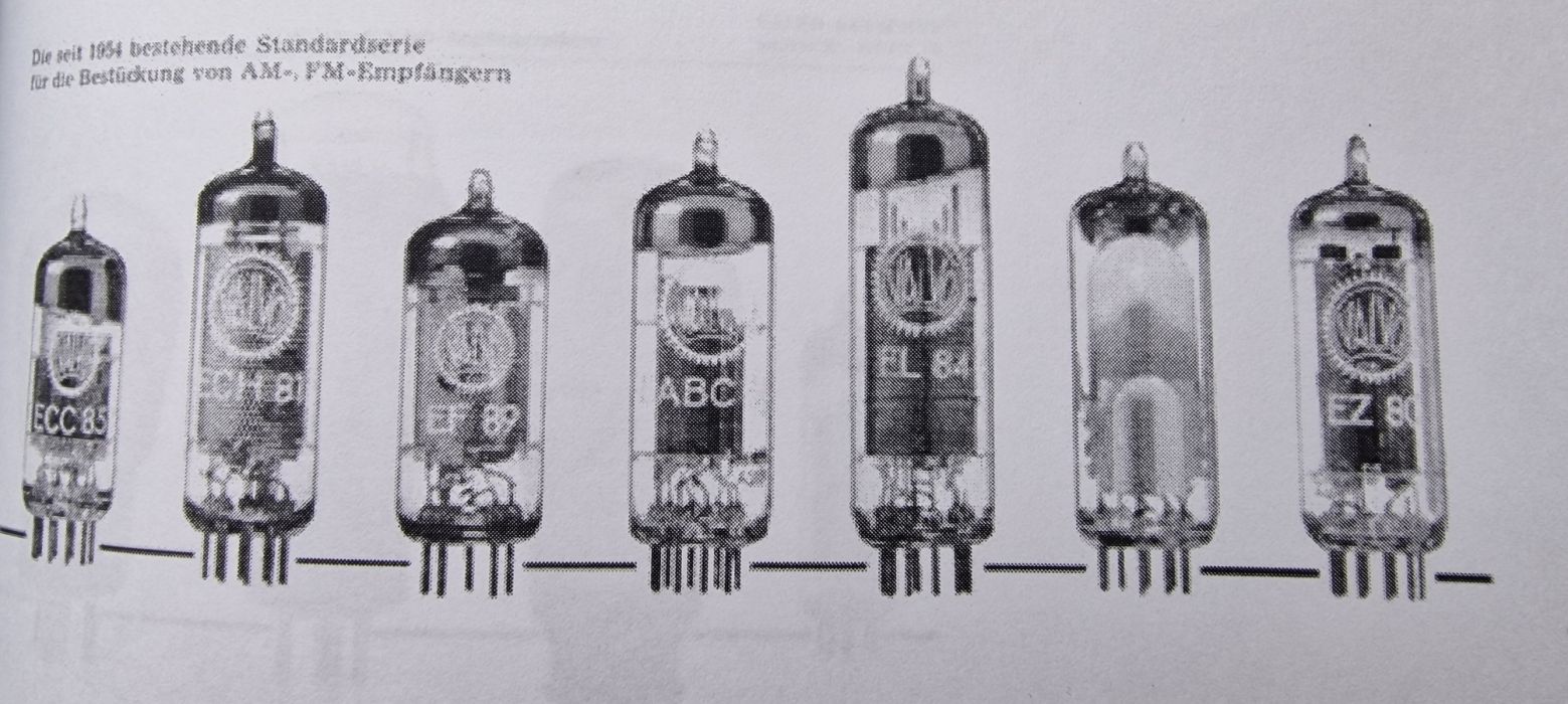Erstaunlich - in einer früher von mir ausgedruckten Doku Valvo Berichte Band X Heft 1/2 welche 40Jahre Valvo Röhrenhistorie beschreibt, fand ich ein Bild der typischen Radioröhrenreihe 1953 Novalröhren. Hier in der Reihe auch eine EL84 - auch ohne g1 Kühlbleche (!!!) Wenn das wirklich ein Produktionsfehler sei, ich kann mir kaum vorstellen das die Valco Fachpresseabteilung das Bild so einer fehlerhaften EL84 nicht bemerkt oder ignoriert hat?