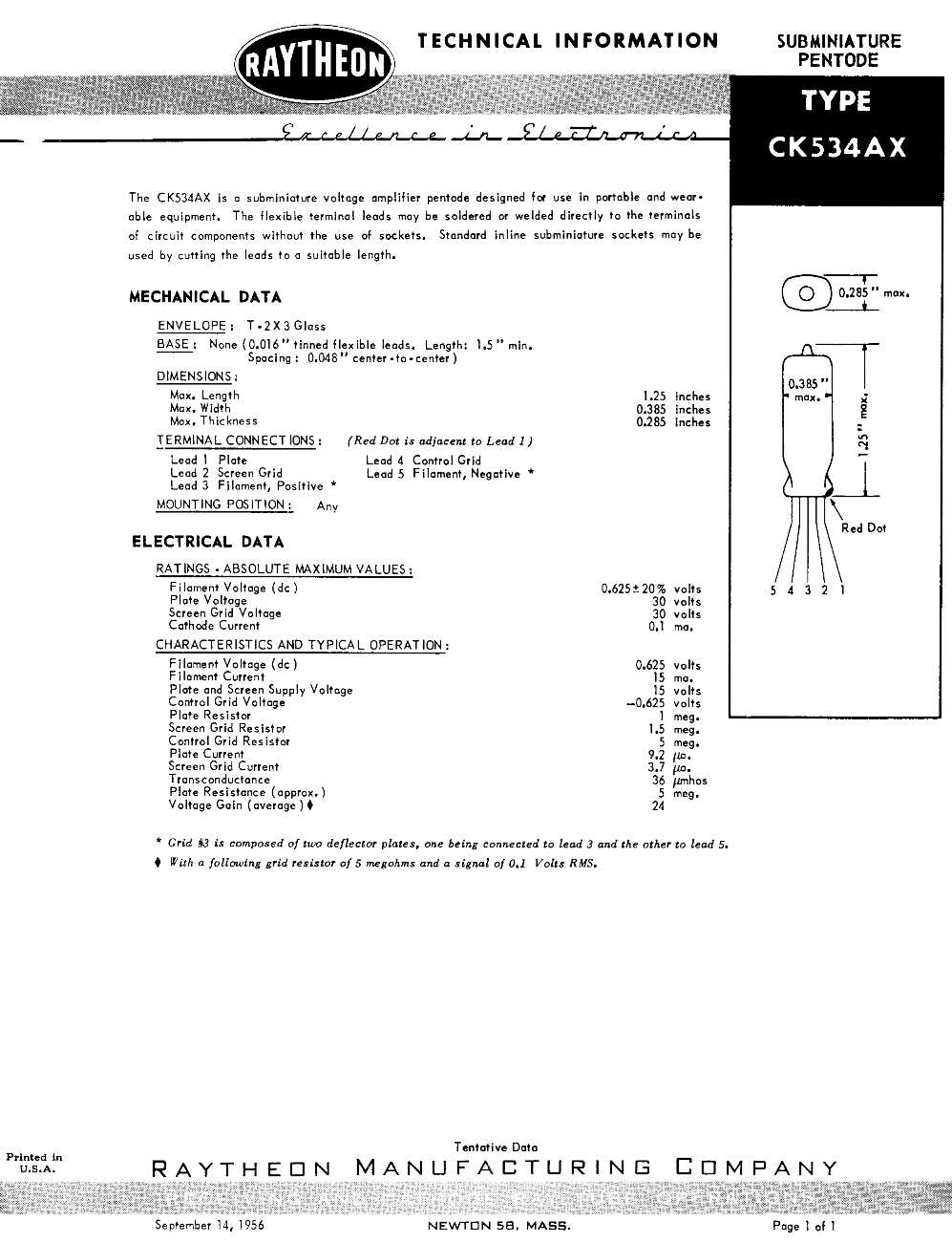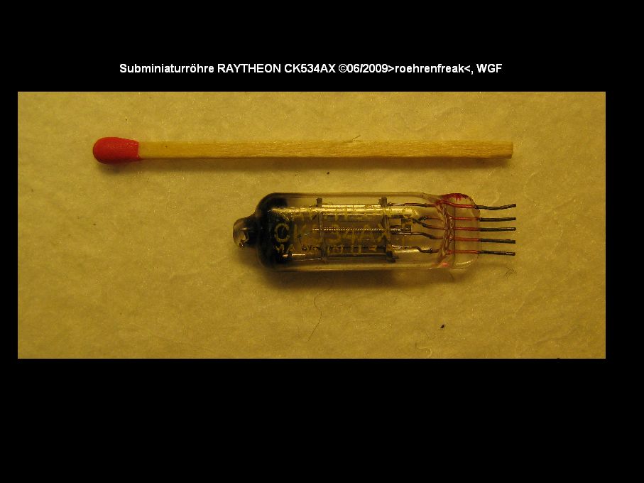 während des Subminiaturröhren-Radio-Projektes stieß ich in meinem Fundus auf eine RAYTHEON CK534AX. Es scheint sich um eine Triode zu handeln. Leider bin ich bei der Suche nach Daten zu diesem Röhrlie zu keinem Ergebnis gelangt. Wäre sehr nett wenn jemand aus dem Forum weiter helfen könnte. Tausend Dank!
