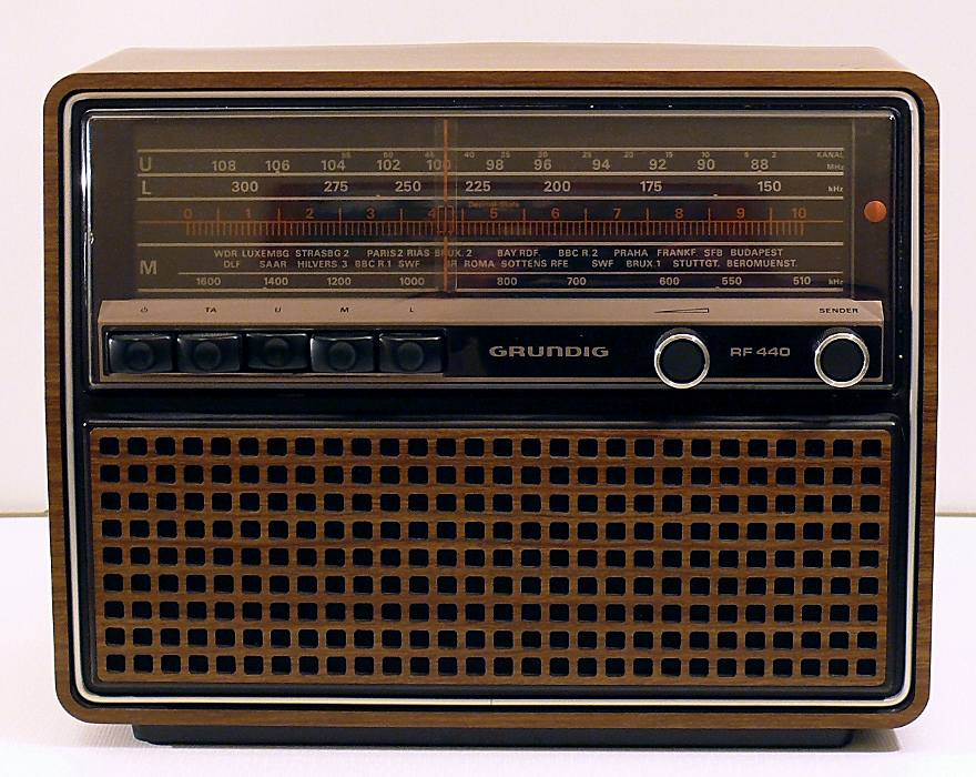 Herst. : Grundig Mod. : RF 440 Jahr : 1976 -1978 Bes. : LW, MW und UKW Bem. : Wechselstromspeisung, Thermoplastgehäuse, Tischgerät, 5 Tasten