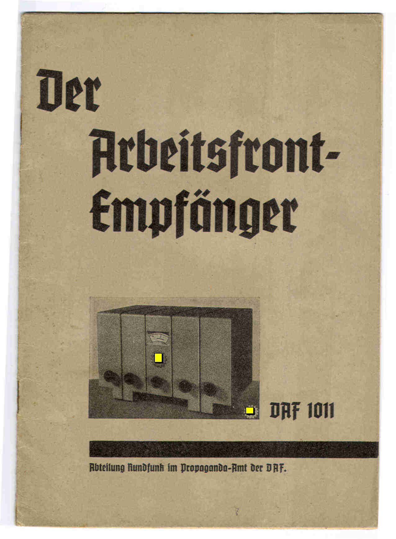 Im Übrigen war der DAF auch im normalen Handel erhältlich. Er kostete 295,-- RM und war damit für einen privaten Käufer völlig uninteressant, da es für´s gleiche (oder sogar weniger) Geld leistungsfähigere Empfänger gab. Die Konzeption dieses Gerätes war, obschon er natürlich wie alle Gemeinschaftsgeräte (!) auch ausländische Sender empfangen konnte, die Gewährleistung von sogenanntem Gemeinschaftsempfang in Betrieben und Werkstätten, womit der jeweilige Bezirks- oder Gausender und der Deutschlandsender auf der langen Welle gemeint war. Dies dürfte für private Interessenten keinen Reiz besessen haben (zumal er ja auch keinen eingebauten Lautsprecher hatte) !!