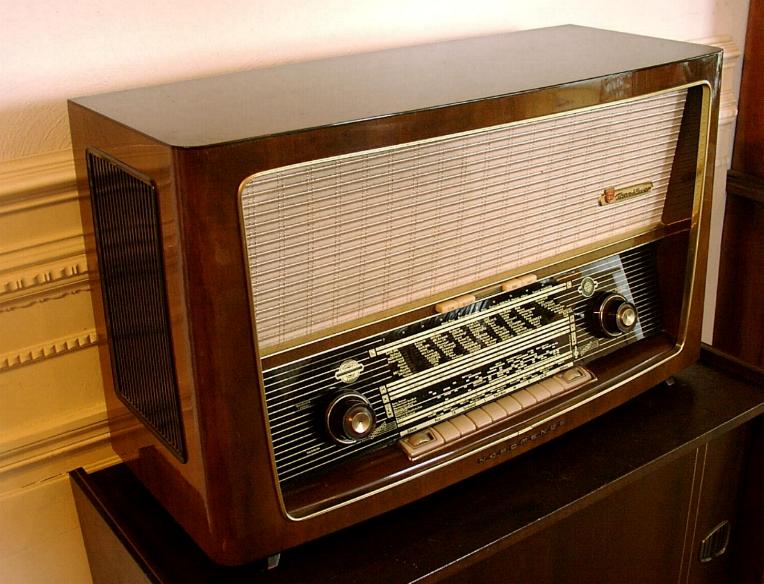 Nordmende Tannhäuser von 1958 mit sechs Lautsprechern in vier verschiedenen Größen, Hi Fi Expander und Gegentaktendstufe. Der Klang dieses Radios ist im wahrsten Sinne des Wortes umwerfend. Auch die sehr hohen Töne werden kristallklar und ohne Klirren wiedergegeben.