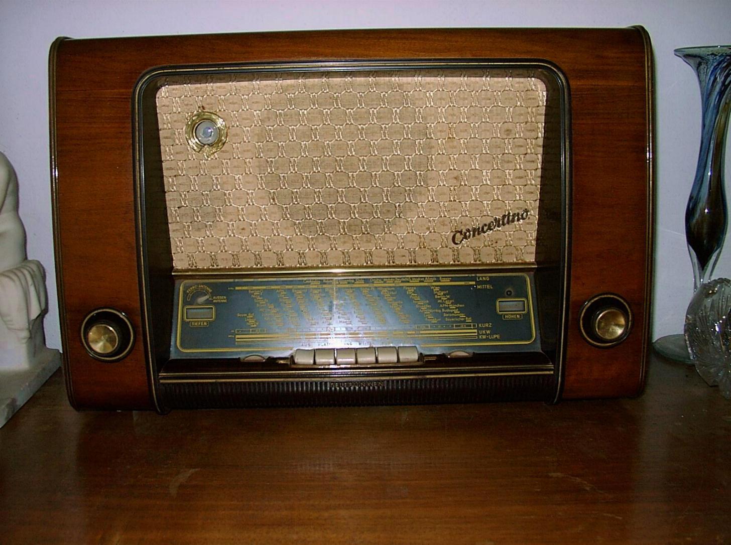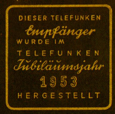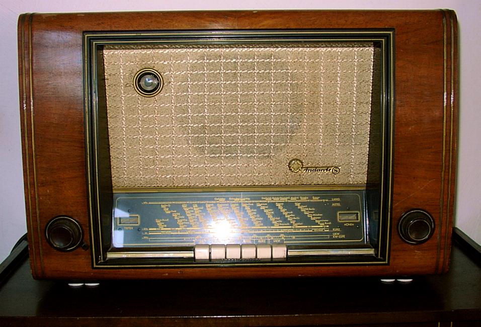 Telefunken Andante S von 1953. Ein Jubiläumsgerät "50 Jahre Telefunken". Das Radio ist größer als das Andante, hat jedoch die gleichen Röhren und die gleiche Technik. Der einzige Unterschied: Ein zusätzlicher Höhenregler.