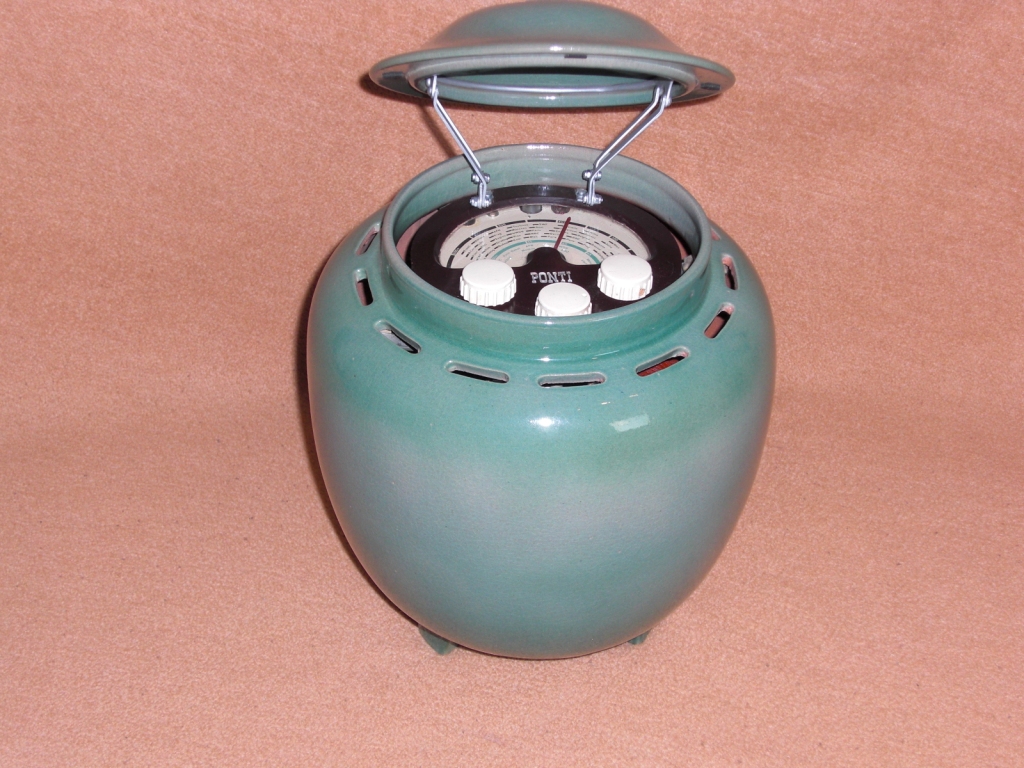 Hallo zusammen, heute möchte ich meine Ponti Zauberdose vorstellen. Dieses Gerät wurde einst etwa 1948 von der Rondo GmbH/Willy Bürkle Stuttgart hergestellt. Es ist ein Allstromgerät 6 Kreiser, mit dem Röhrensatz UCH41, UAF41, UL41. Diese Urnen/ Vasenform sollte damals etwas exquisites und außergewöhnliches darstellen. Es wurde als sehr klangschön angepriesen. Ehrlich gesagt klingt es aber eher ähnlich näselnd, wie ein Trabbi Zweitakter .