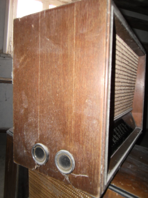 Das Gerät hat an den Seitenwänden die Bedienelemente: 1) Wellenschalter 2) Frequenzabstimmung 3) Lautstärke (mit ein aus?) 4) Klangblende