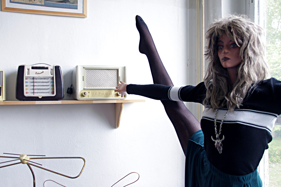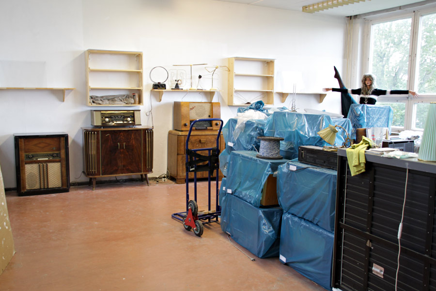 Gestern ging es also weiter, die Stirnseite ist fast fertig, Bilder wurden aufgehängt und mit den kleinen weißen Radios ein Kontrast zu den Truhen geschaffen.