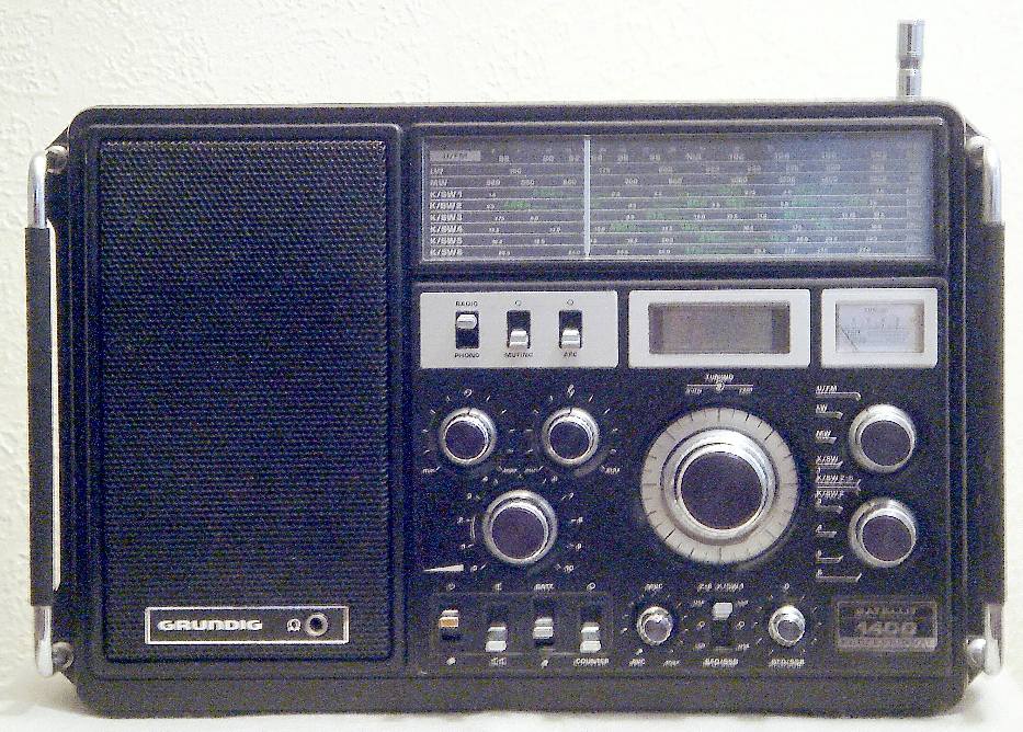 Herst. : Grundig Mod. : Satellit 1400 Professional Jahr : 1980 - 1982 Bes. : LW, MW, KW (6 Bänder mit Spreizung), UKW, SSB mit BFO, Bem. : Netz- und Batteriespeisung (9 V), Thermoplastgehäuse, Kofferradio, Super mit Doppel-/Dreifachmischung, und und
