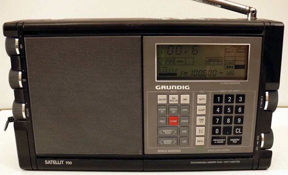 Herst. : Grundig Mod. : Satellit 700 Jahr : 1992 - 1996 Bes. : LW, MW/KW (durchgehend von 528 kHz bis 30 MHz) und UKW, USB, LSB Bem. : Netz- und Batteriespeisung (4 x 1,5 V), Thermoplastgehäuse, Kofferradio, Doppelsuper und und