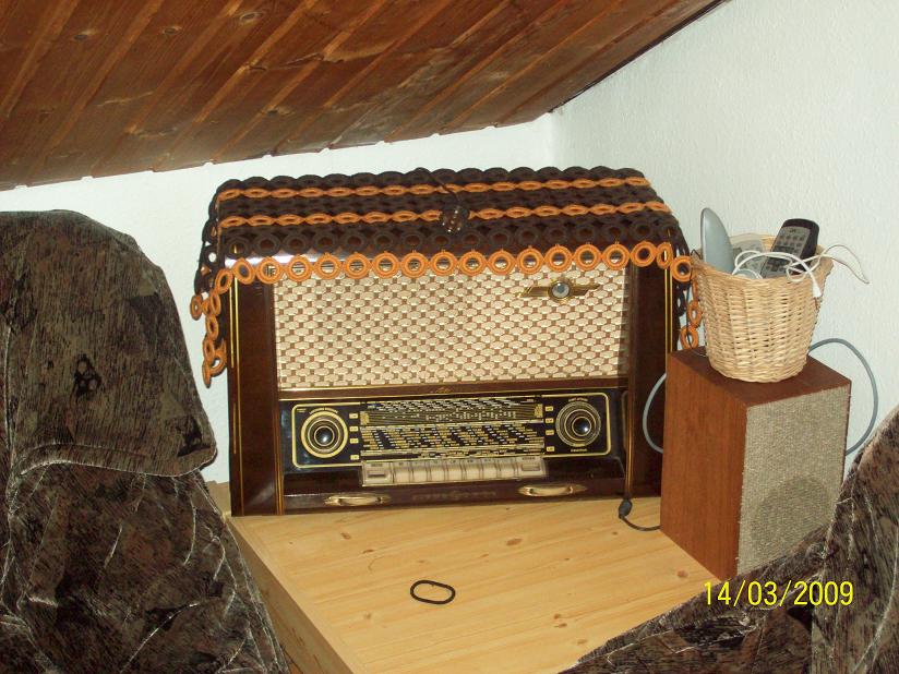 da hat ein alter Nordmende sein Zuhause gefunden, ein Othello 55. Drei Lautsprecher nach vorne, einer davon ist ein Kondensator. Klanglich ein Hochgenuß. Im Sommer werd ich den noch neu lackieren, wenn der Dachboden wieder warm ist...