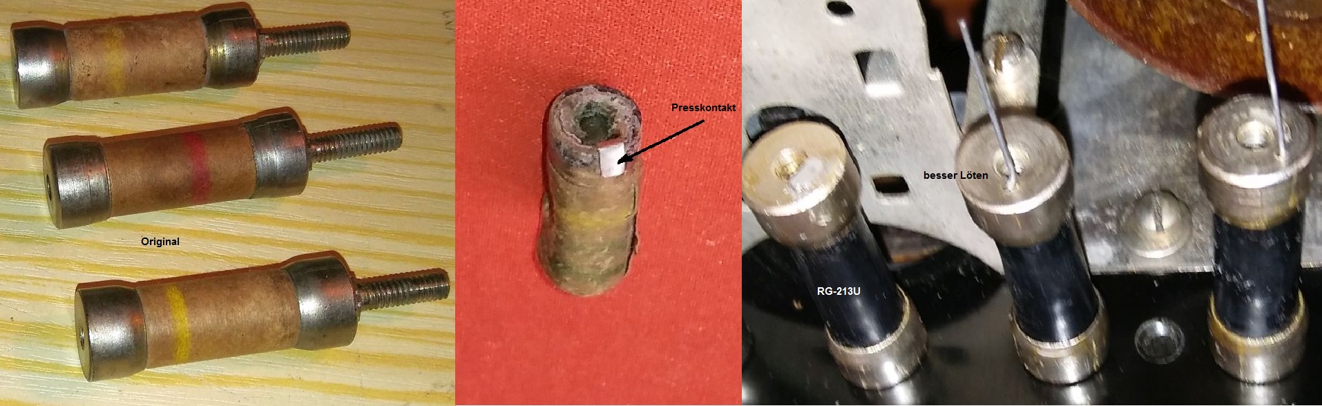 Momentan steht die Renovierung eines Radiola III an, an dem (fast alles) marode ist. Der Radiola III war eine "Low-Cost"-Variante des Radiola RS. Daher müssen alle Kondensatoren und die R/C-Kombination aufbereitet werden. Es eignet sich dazu ein 35 mm Stück Aussenisolation des RG-213U Koaxkabels.