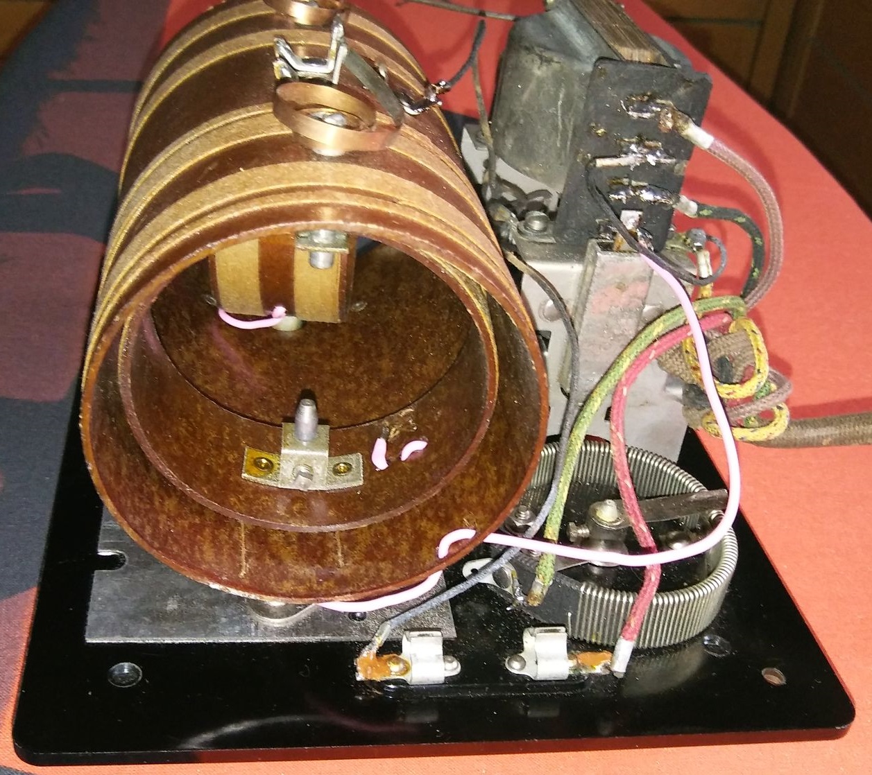Die Bauteile in meinem Exemplar waren alle marode und mussten aufwändig zerteilt und mit Glimmerkondensatoren neu bestückt werden. Der äussere Isolierschlauch von RG-213 Kaoaxkabel passte genau in die Kappen hinein. Die beiden Variometer zeigten Kontaktprobleme. Sie funktionierten nicht bzw. nur mit vielen Unterbrechungen sowohl im Abstimm- als auch Rückkopplungskreis. Das Problem war zweigeteilt. Zum einen gab es Kabelbrüche zu den Rotoren. Ausserdem verhinderte Flugrost auf der Achse der Rotoren einen zuverlässigen Kontakt.