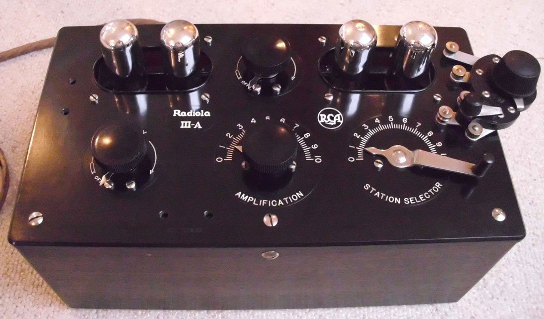 wie in meinem gestrigen Post angekündigt, hier also nun die Vorstellung des Radiola IIIa von RCA (diesmal in der regulären US-Ausführung). Hinsichtlich der Funktionsweise möchte ich auf meine technische Beschreibung verweisen, die ich dort abgegeben habe. Das gleiche Innenleben ist hier nochmal vorhanden, allerdings gekoppelt mit zwei weiteren NF-Verstärkerstufen, so daß also die Schaltung eines