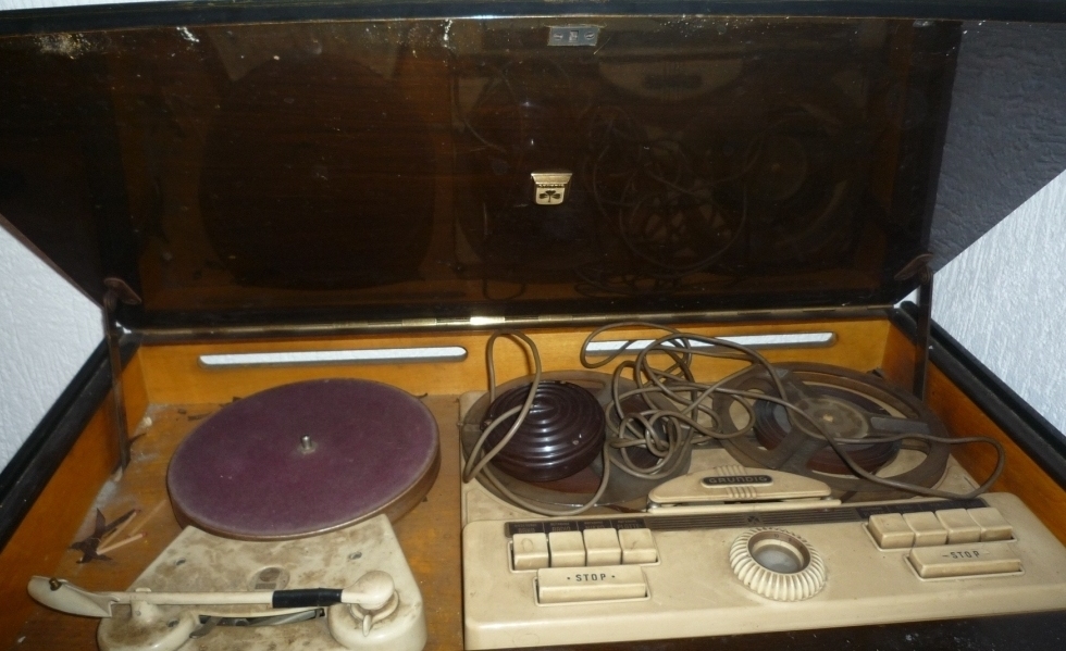 was mir an Deinem Gerät besonders gefällt, ist im Gegensatz zur klassischen Musiktruhe, die kompakte Bauweise mit dem integrierten Plattenspieler und Tonbandgerät.