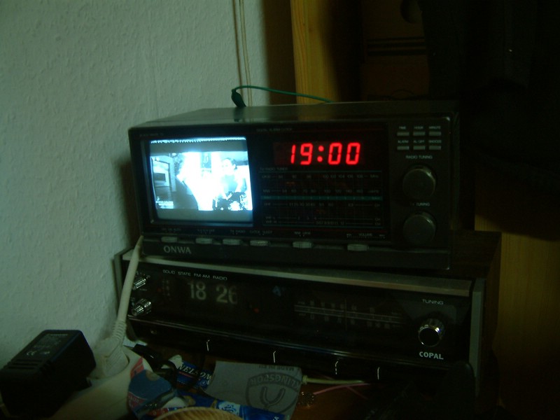 Radioempfang: gut, sauberer Ton ohne Bässe, Fernseh: kontraststarkes gutes Bild, die kleine Störung oben dürfte Teletext sein. Gefüttert wird er per Krokokabel aus dem Kabel-TV-Anschluß