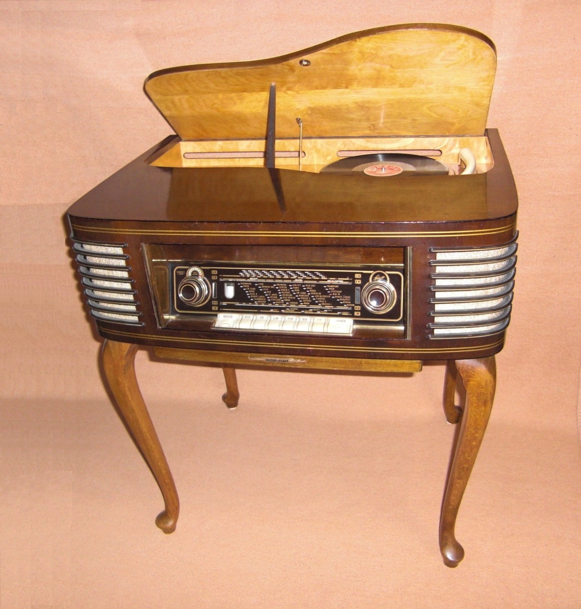 weil sie so hübsch sind, hier noch ein weiteres Gerät dieser Machart (Stahlgerippe /Laminat) Der 834A hat übrigens auch dieses Stahlgerippe. Ich hatte es an der Stelle vergessen zu erwähnen. Mit der Jahresangabe von 1934 habe ich da inzwischen so meine Zweifel. Ich denke das Gerät wurde, genauso wie die anderen dieser Machart, etwas früher gebaut.